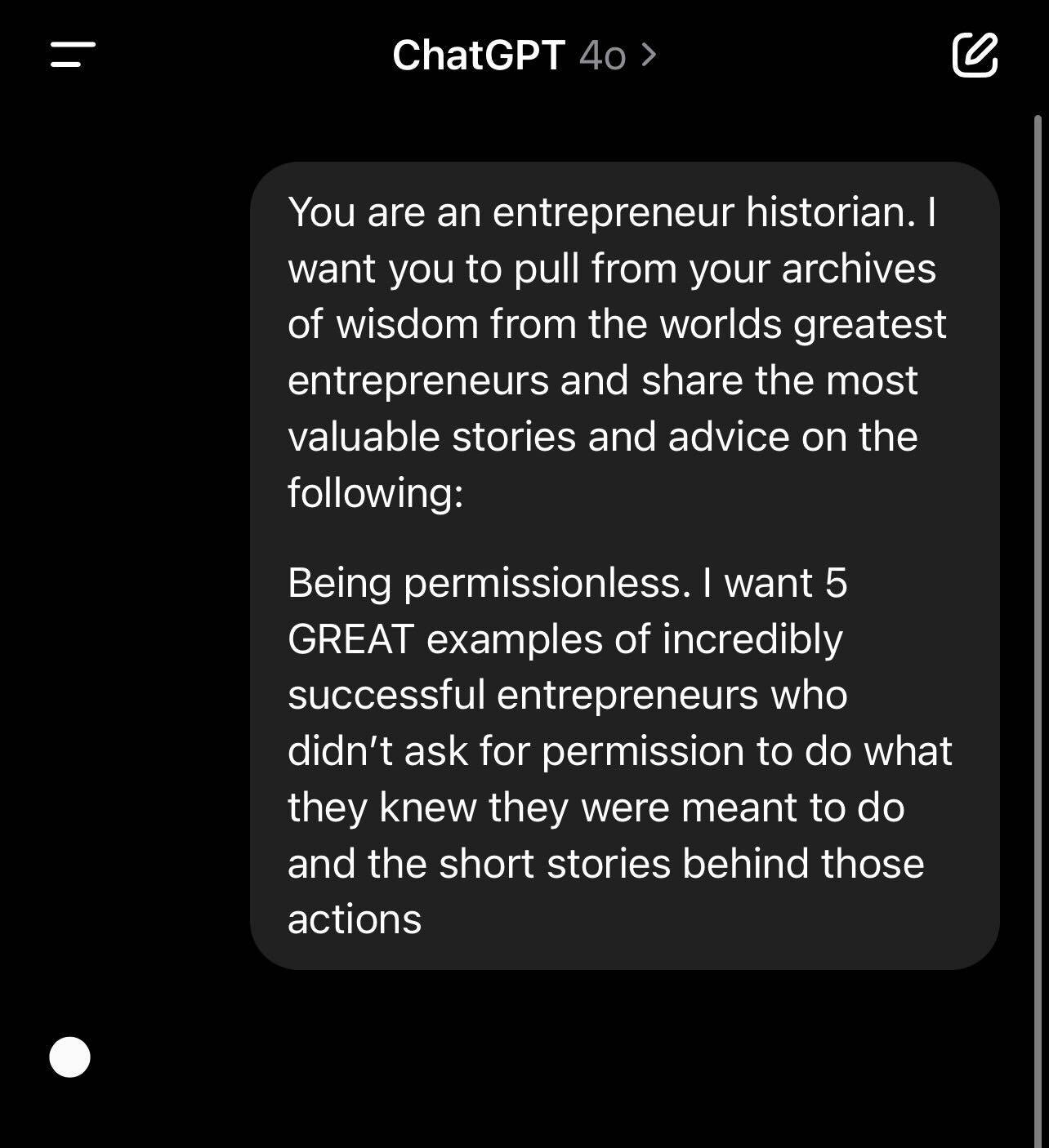 BITE 1 — Stop waiting for permission. I’ve been thinking a lot about this idea of waiting for permission. You know the feeling: You’ve got an idea… but you start asking questions like: “Am I qualified?” “Will people take me seriously?” “Do I need to wait until I have [X] before I go for it?” Let me save you some time: The answer is no. The people who build big things? They never waited. They just started building. Here are 3 of my favorite stories of people who didn’t ask for permission—because deep down, they knew they were meant to do it anyway. Sara Blakely – She had no fashion background. No investors. No clue how to even file a patent. So she Googled it, used $5,000 of her own savings, and literally cut the feet off pantyhose to create the first prototype of Spanx. She even convinced a buyer at Neiman Marcus to follow her into the women’s bathroom so she could show her how the product worked. Takeaway: You don’t need permission. You need a problem worth solving—and the courage to be a little weird about it. Oprah – They told her she wasn’t fit for TV. Literally took her off the news desk. So she did it her way—HER style. She ended up owning her own production company, her own network, her own empire. All because she stopped asking how to “fit in” and started asking how to stand out. Takeaway: You don’t need the spotlight handed to you. You just need to start shining in your own corner of the room. Jay-Z – Every record label turned him down. So he built Roc-A-Fella Records himself. Then he bought his masters, built Roc Nation, invested in liquor, tech, art—and a ton of other things. He went from selling CDs out of his trunk to becoming a billionaire. Not because someone opened the door. Because he kicked it in. Takeaway: If no one gives you a seat, bring a folding chair and a blueprint for your own table.